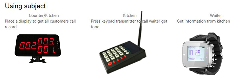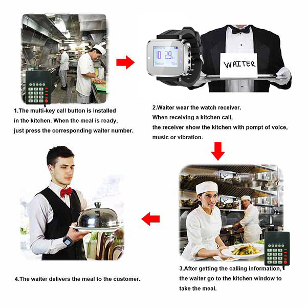 لا داعي للقلق بشأن النادل غير قادر على خدمة بهم الطعام في الوقت. ال يمكن للنظام تنبيه الخادم بسهولة من خلال جهاز استدعاء ساعة اليد - الاهتزاز والفلاش و الصافرة.