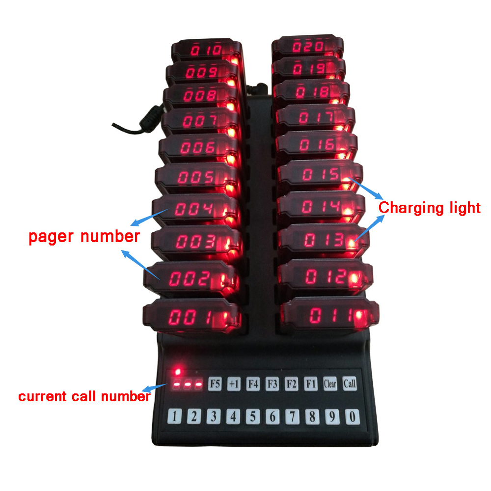 1.يحتوي على 20 جهاز استدعاء و 1 لوحة مفاتيح ؛ ذاكرة تخزين مستقلة تتجنب فقدان البيانات.
