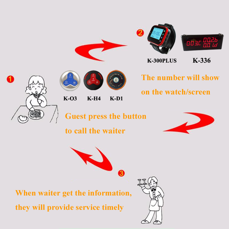 يستخدم نظام استدعاء الخدمة اللاسلكية على نطاق واسع في منطقة الخدمة. إنه الزر لـ ضيف استخدام. متى يحتاج الضيف ماذا الخدمة ، هو أو هي فقط اضغط على الزر القريب منه أو هي ، له أو هي سيتم عرض رقم المكتب في الموسيقى أو مشاهدة تحذير بيجر صوت. لذلك ، يمكن للنادل تقديم service.It في الوقت المناسب جدا يجعل التواصل مع الضيوف ببساطة و بكفاءة. إبقاء العملاء على اطلاع ، الموظفين علم ، وعمليات التشغيل بسلاسة ، إرضاء العميل والخادم في نفس الوقت. مرحبًا بك لاختيار نظام الاتصال اللاسلكي الجهاز.