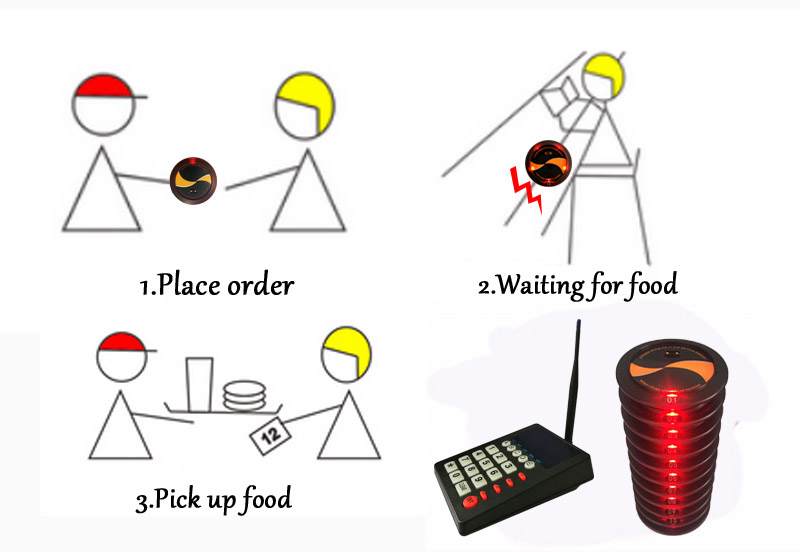 مجموعة واحدة من نظام الاستدعاء للمطعم يتضمن لوحة مفاتيح واحدة و 20 جهاز استدعاء يمكن أن تظهر الارسال لوحة المفاتيح 4 أرقام رقم يمكن أن يعلق المتلقي بيجر على الرقبة