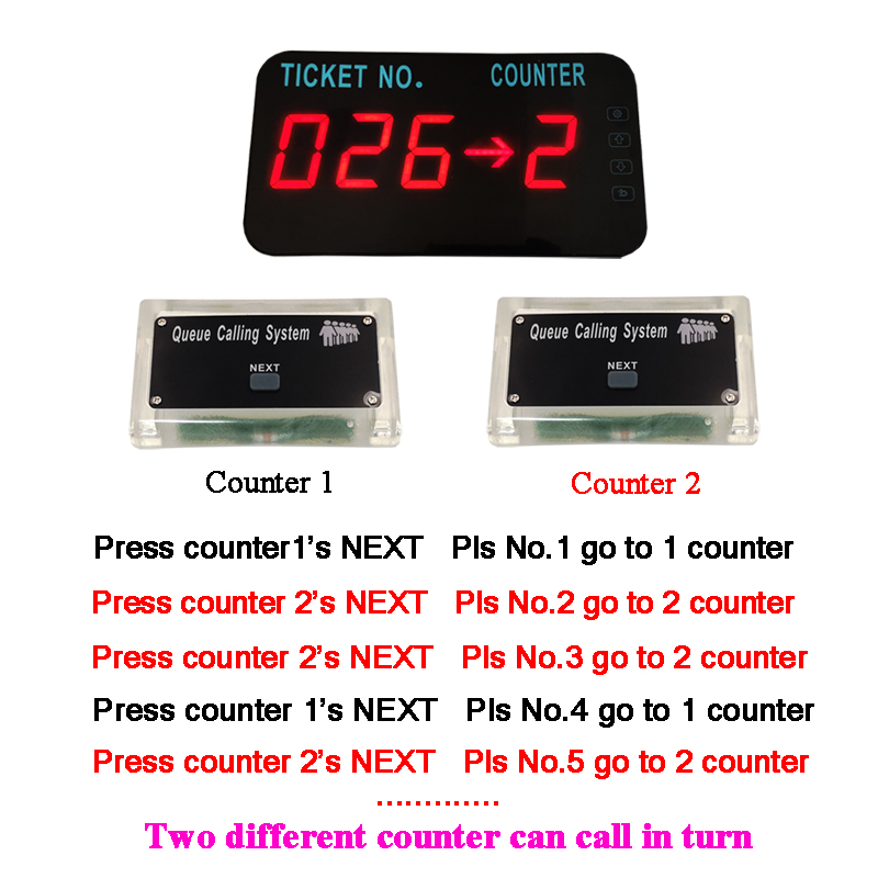 1. 3 مفاتيح والسيليكون مقاوم للماء لزر استدعاء قائمة الانتظار 2. يمكن أن تعرض شاشة قائمة الانتظار رقمين لعرض رقم التذكرة ورقمين لرقم العداد 3. موزع التذاكر لعمل التذكرة للعميل 4. خلق بيئة ممتعة ، وتحسين صورة المطعم