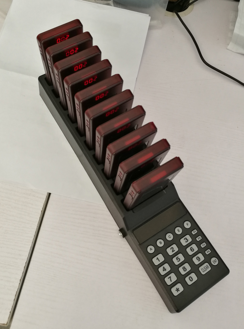 يستخدم نظام كوستر بيجر بشكل رئيسي في مطاعم الوجبات السريعة ، ومطعم الخدمة الذاتية ، والعيادة ، والمستشفى ، ومقهى الشاي ، والمكتب ، وما إلى ذلك ، أين هناك الكثير من العملاء ينتظرون الخاصة بهم خدمة. ال يتكون النظام من جهاز إرسال لوحة مفاتيح للمتصل وجهاز استقبال بيجر للشخص الذي سيتم استدعاؤه. متى المتصل جاهز لتقديم الخدمة ، هم الضغط على الرقم المقابل على لوحة المفاتيح لإرسال معرف إلى جهاز النداء. و سيعرف الأشخاص الذين يحملون البيجر المعلومات التي تفيد بأن الأطباق أو الخدمة جاهزة للتقديم ويأخذونها في وقت مبكر