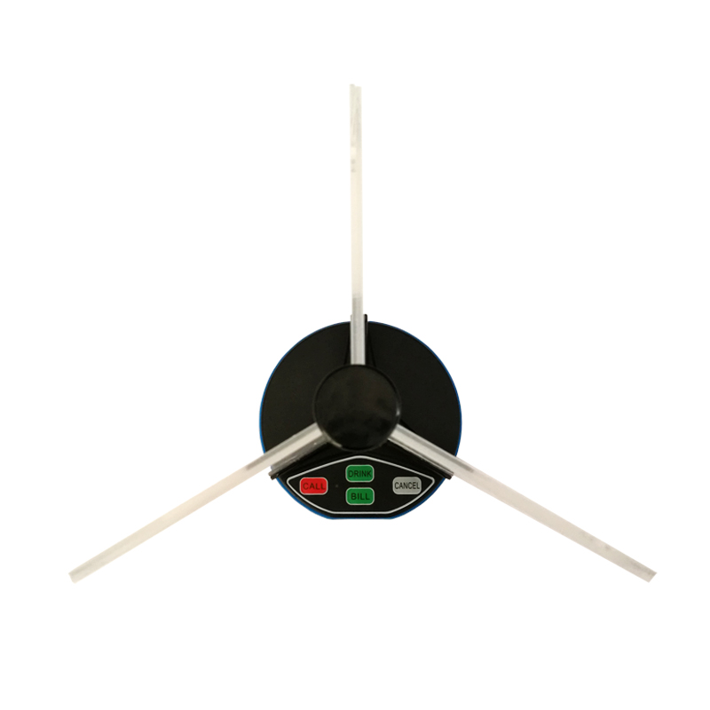 عندما يحتاج الضيف إلى أي خدمة ، فيمكنه الضغط على الزر الموجود على الطاولة ، وسيتم عرض رقم الجدول على مستقبل الشاشة أو شاشة العرض بصوت واضح أو اهتزاز "dingdong". لذلك يمكن للنادل تقديم الخدمة في الوقت المناسب جدا.