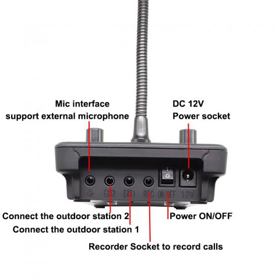 اتجاهين مجموعات الاتصال الداخلي يمكن تعديل حجم المحطة الرئيسية والمحطة الفرعية بشكل منفصل مع مقبس مسجل ، يمكن توصيل معدات خارجية للتسجيل البعد: 138 * 98 * 56 مم