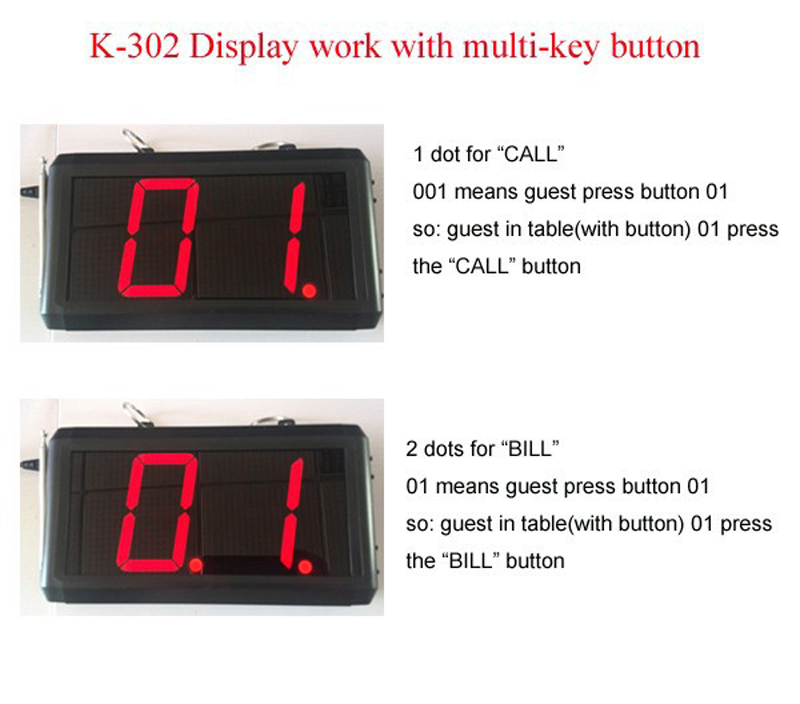 يستخدم نظام الاتصال اللاسلكي على نطاق واسع في منطقة الخدمة. تتكون من زر طاولة لاستخدام الضيف وجهاز استقبال الإشارة لاستخدام النادل أو النادلة عندما يحتاج الضيف إلى أي خدمة ، فإنهم يضغطون فقط على الزر الموجود على الطاولة ، وسيظهر رقم المكتب هذا على جهاز الاستقبال مع موسيقى أو صوت تنبيه. لذلك يمكن للنادل تقديم الخدمة في الوقت المناسب جدا.