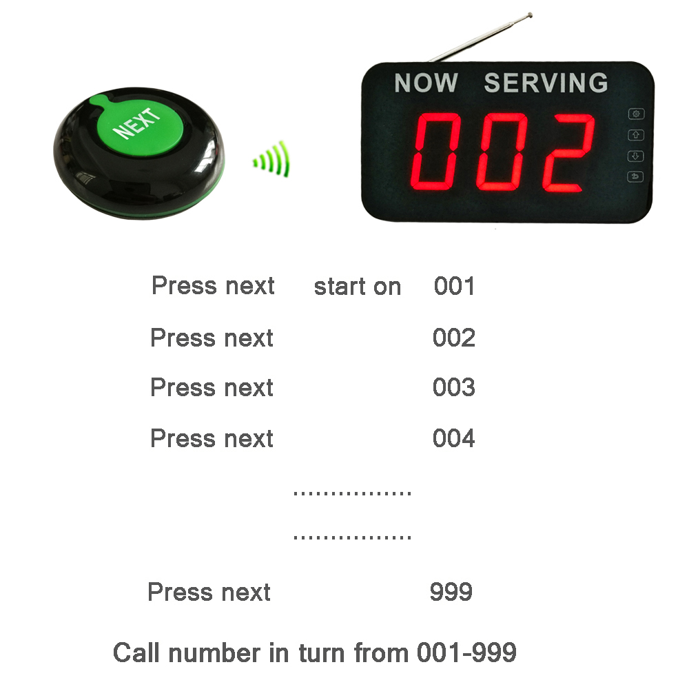 نظام التحكم اللاسلكي في قائمة الانتظار البسيط لنظام الأرقام مع زر اتصال NEXT لمستقبل العرض المكون من 3 أرقام